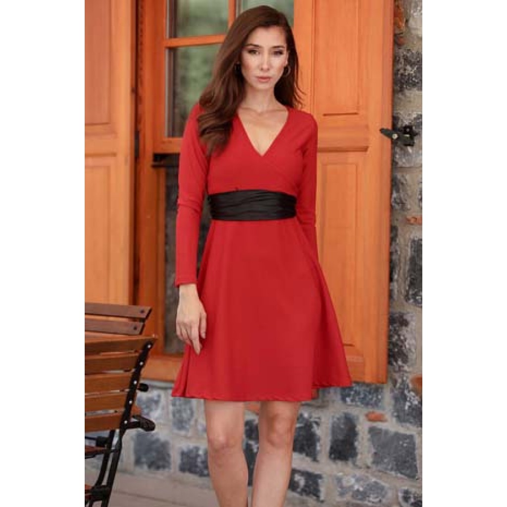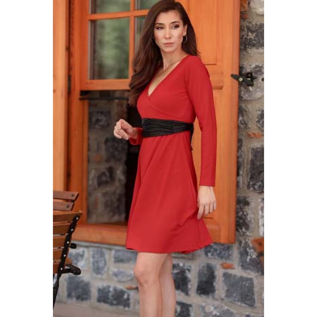 Kırmızı Kemerli Elbise